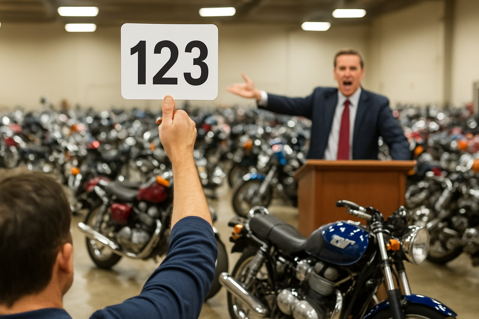 Nos leilões de motos, o pagamento é geralmente feito à vista, sendo necessário comprovar o pagamento rapidamente diante do leiloeiro.